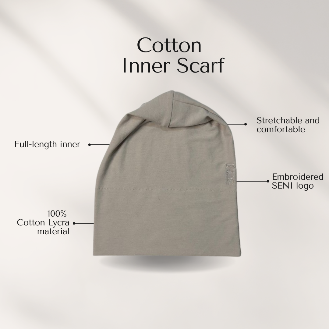 Embrace elegance with our Light Stone Cotton Inner Scarf, a beautifully versatile piece crafted from premium cotton viscose. In a soft, neutral light stone shade, this inner scarf effortlessly complements any wardrobe, adding a touch of grace to both casual and dressy looks. Designed to be gentle on your skin and lightweight, it provides a breathable layer that stays in place all day long. Perfect for creating a smooth, secure foundation for any hijab or headscarf style, the Light Stone Cotton Inner Scarf combines comfort and style in one easy-to-wear accessory.